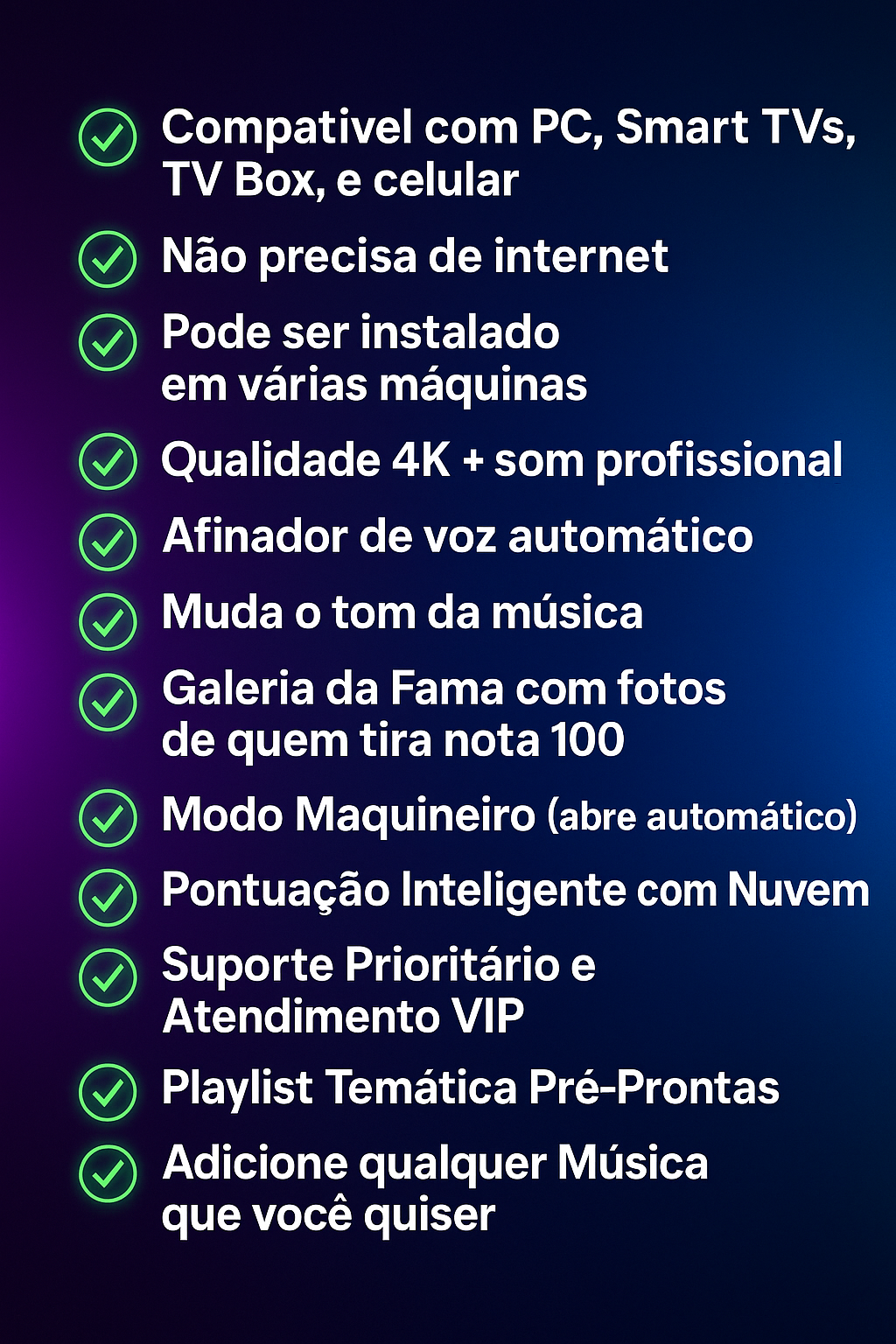 Transforme sua Smart TV, TV Box, Projetor, PC ou Notebook em um Karaokê Profissional.